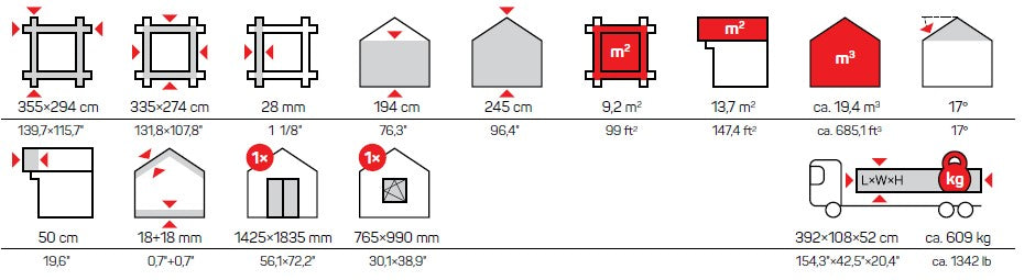 The Alabama is our most popular log structure. It is 99 square foot with a 9’ x 11’ footprint and features double doors and a single window. Crafted from 28mm Nordic Spruce timber, this structure is perfect for guests, a hobby studio, or an artist’s loft. Manufactured with precision at our European factory, this structure seamlessly combines durability with timeless design.